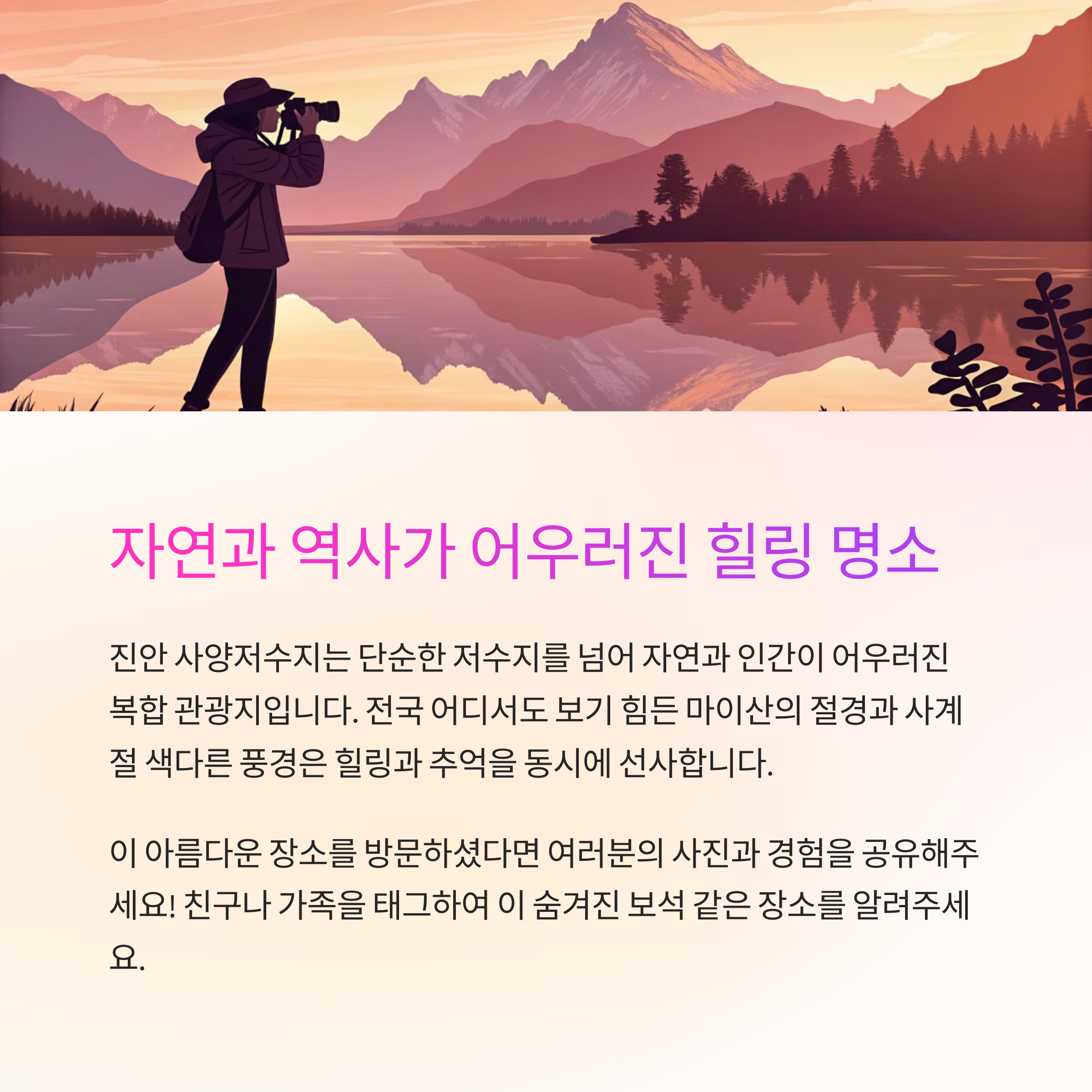 진안 사양저수지, 마이산 절경을 품은 사계절 힐링 명소