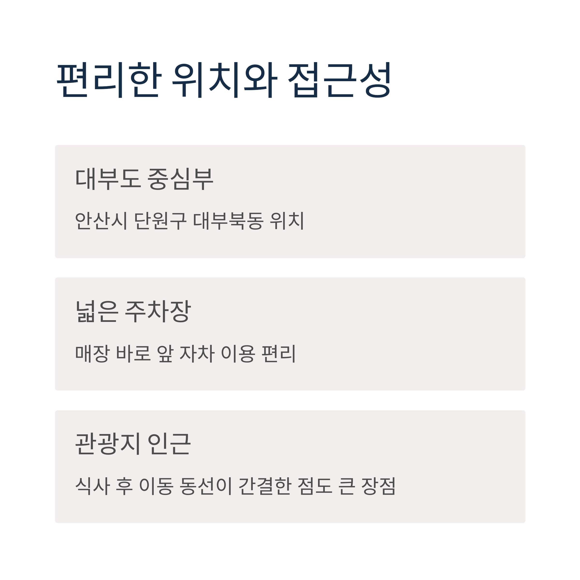 위치와 접근성: 대부도 중심부에 자리한 편리한 위치