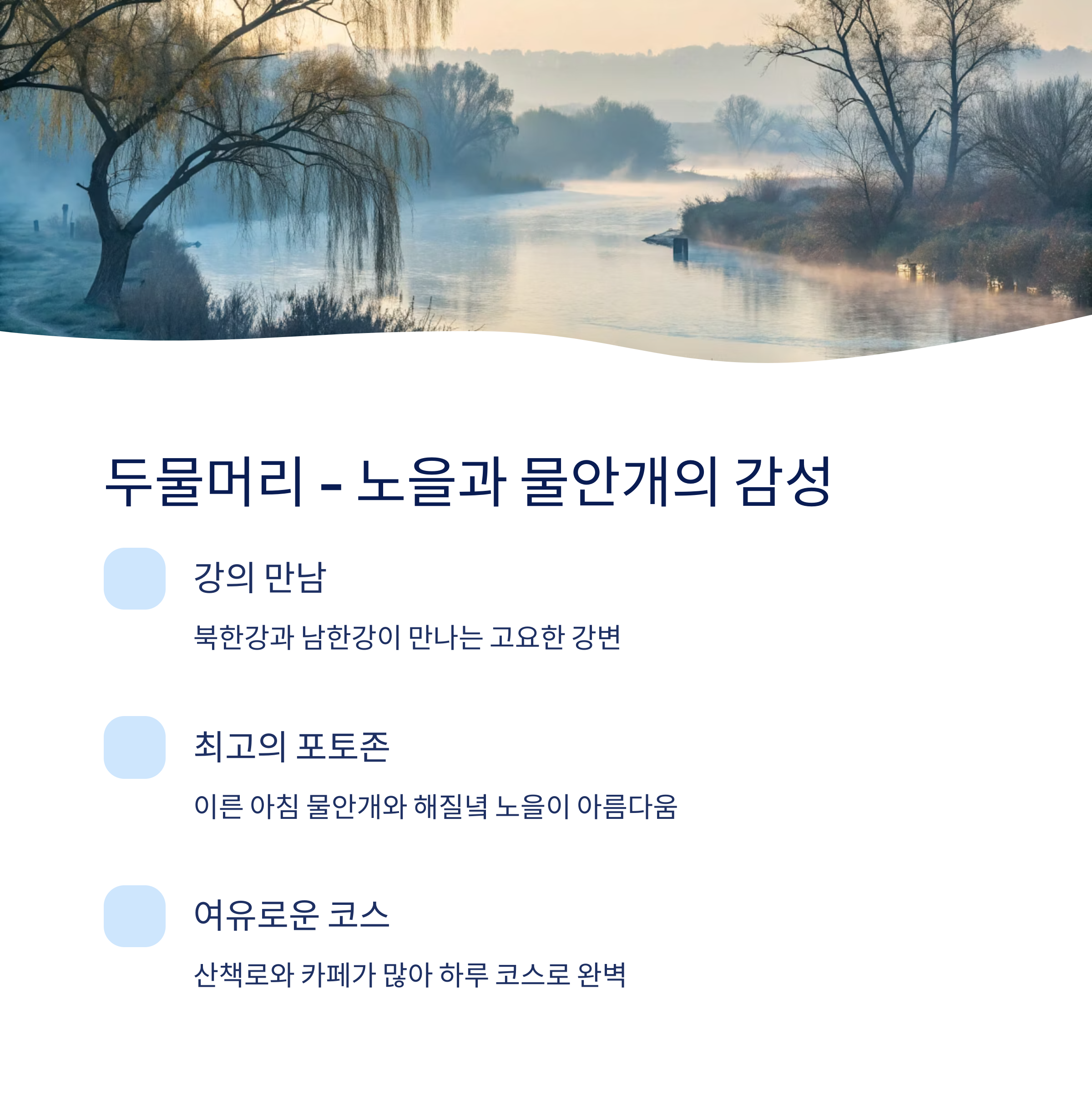 1. 두물머리 – 노을과 물안개가 아름다운 감성 명소