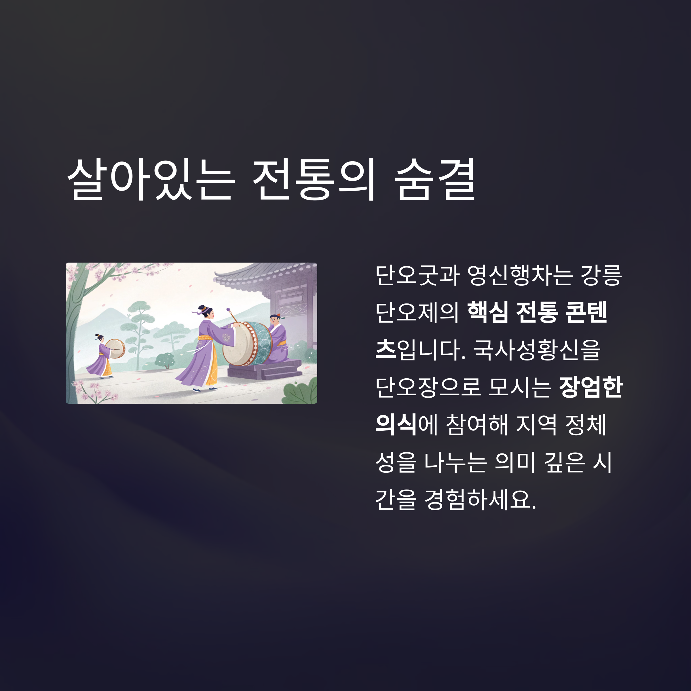 단오굿과 영신행차는 강릉단오제의 핵심 전통 콘텐츠입니다