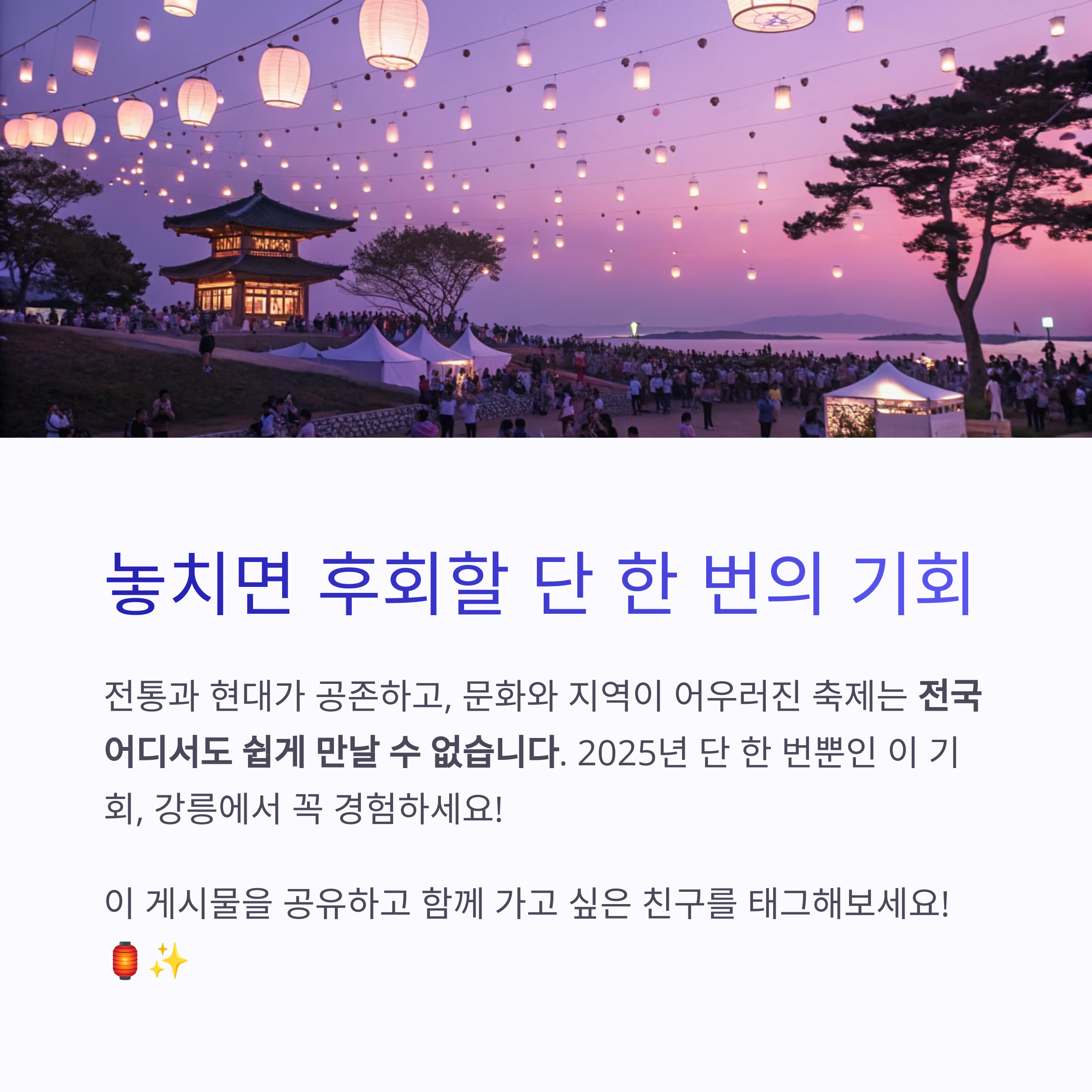 2025년 단 한 번뿐인 이 기회, 강릉에서 반드시 경험해보시길 바랍니다