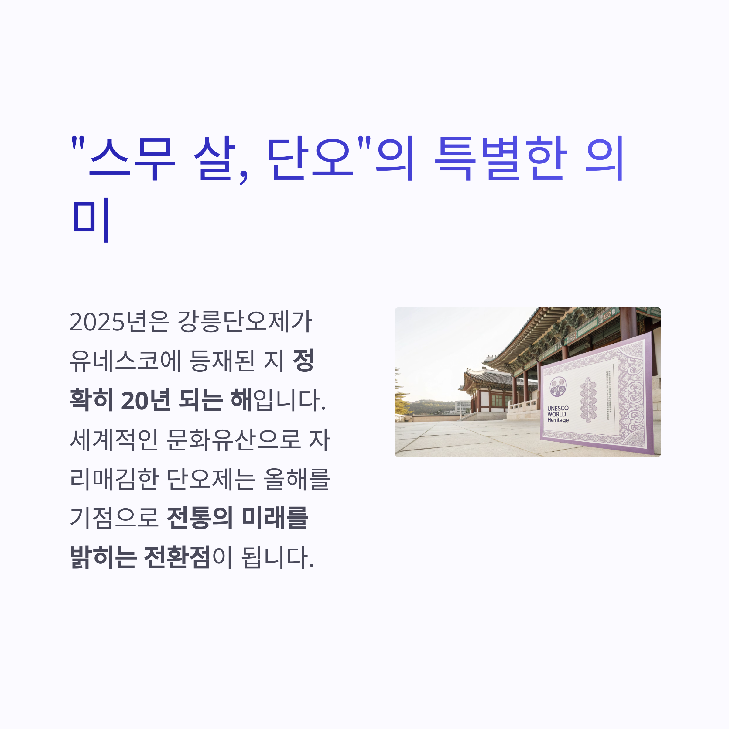 2025년은 강릉단오제가 유네스코에 등재된 지 정확히 20년 되는 해입니다