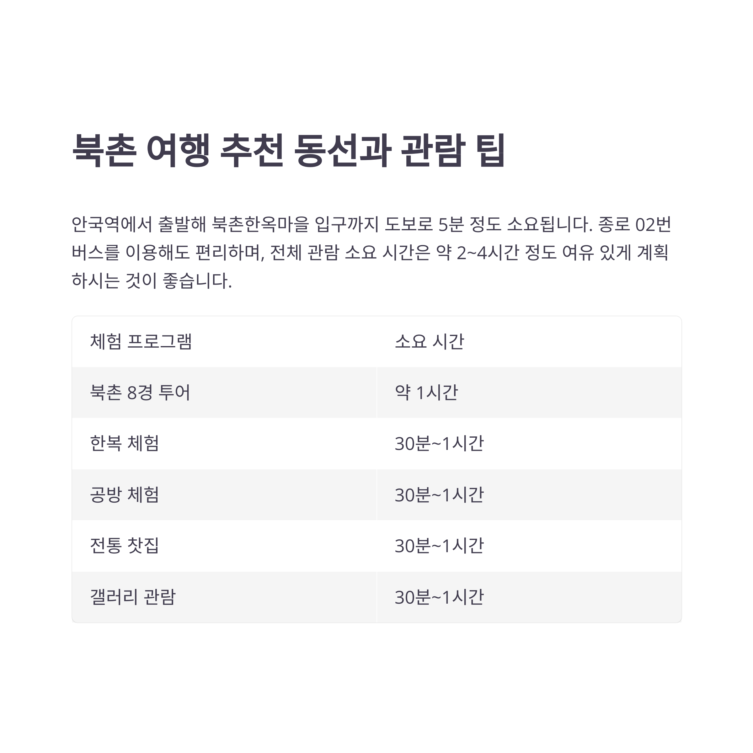 | 북촌 8경 투어 | 약 1시간 |