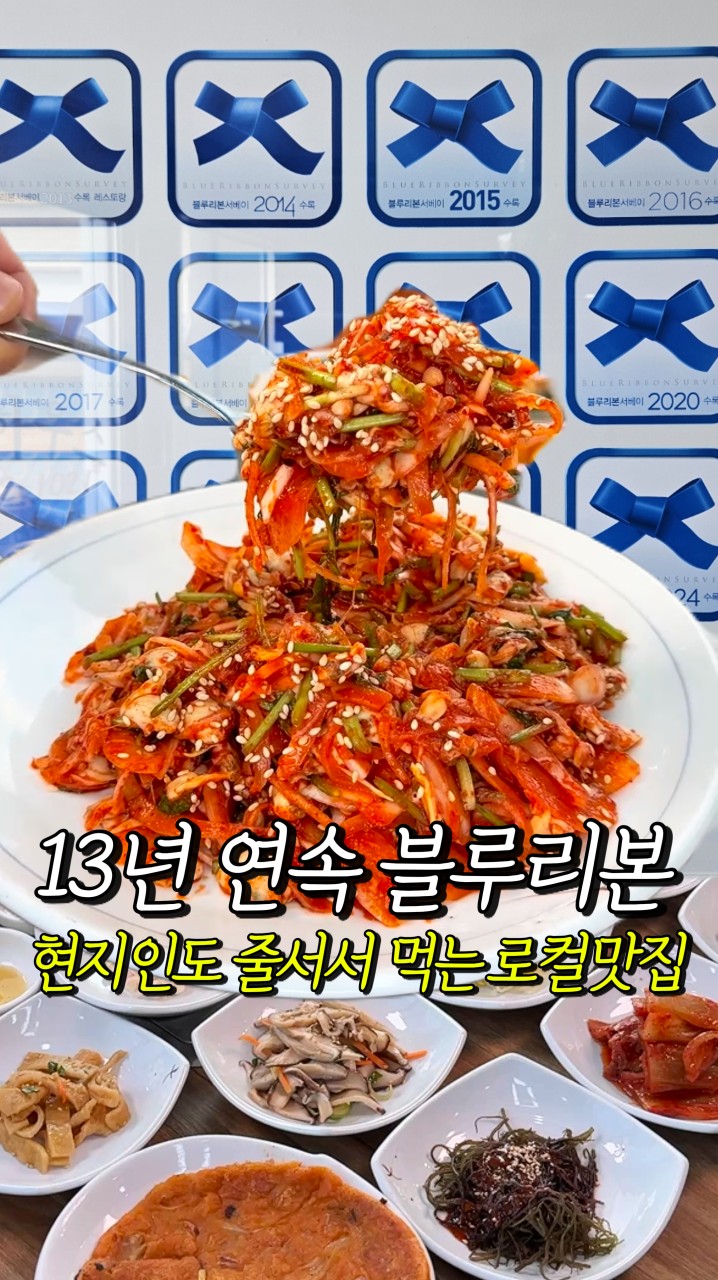 군청 인근에 자리한 ‘수복식당’은 현지인 추천 1순위 백반집으로, 겉보기엔 소박하지만 그 맛과 구성은 상상을 초월합니다. 백반정식 하나만 주문해도 생선구이, 제육볶음, 간장게장, 계란찜, 된장국, 그리고 10여 가지 반찬이 함께 나와 집밥 이상의 퀄리티를 자랑합니다.
