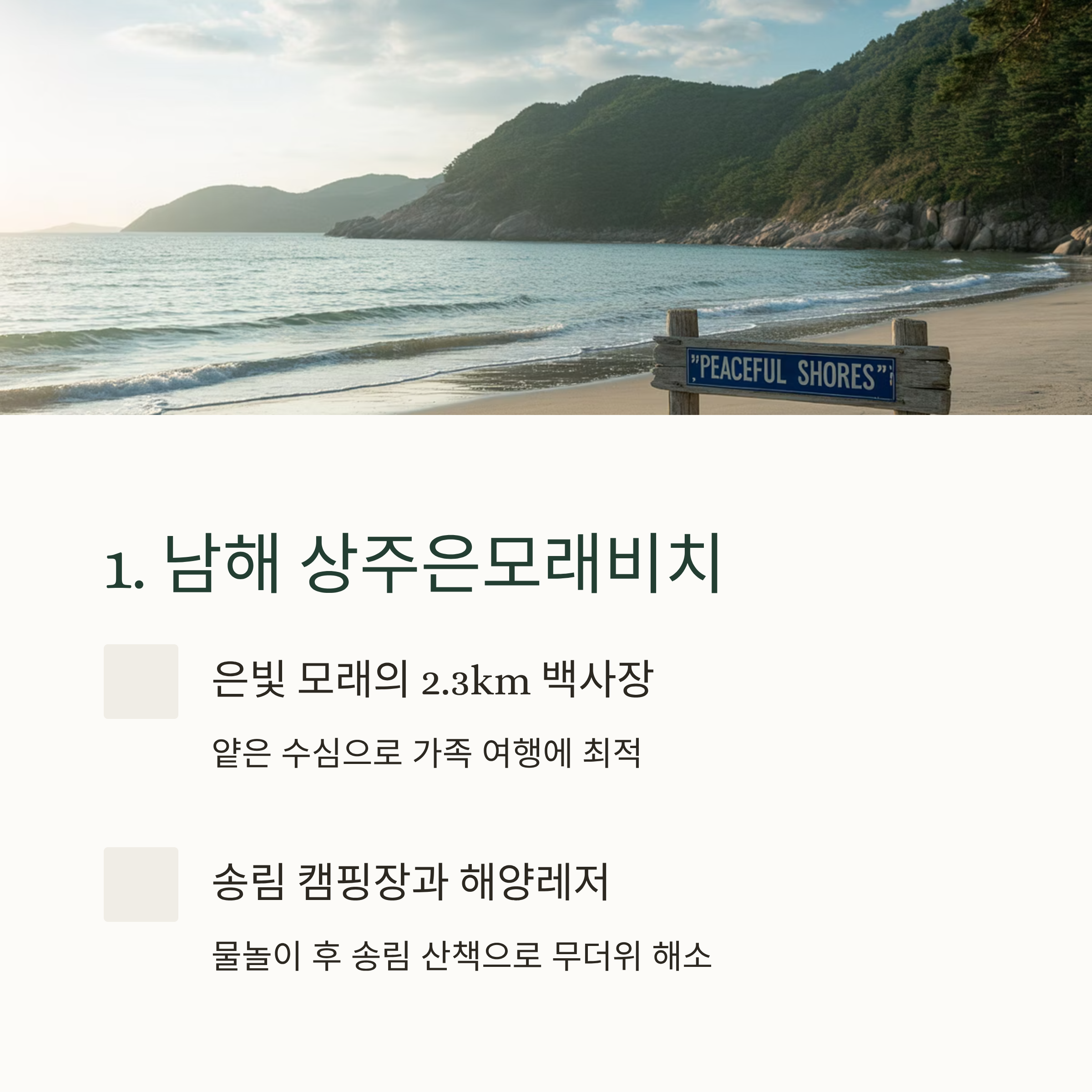 1. 남해 상주은모래비치 – 은빛 모래와 맑은 바다의 조화