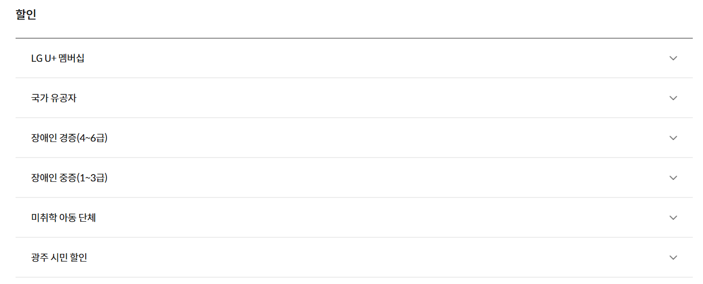 - 지역 주민 할인 (광주시민) → 1,000원 할인 (신분증 지참)