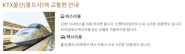 - KTX 울산역(통도사역) 하차 → 20분 거리