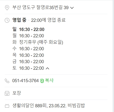은둔식달 비빔김밥달인 , 부산영도 비빔김밥