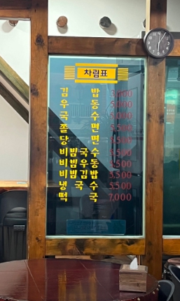 국수 5,500 떡국 7,000(겨울메뉴)