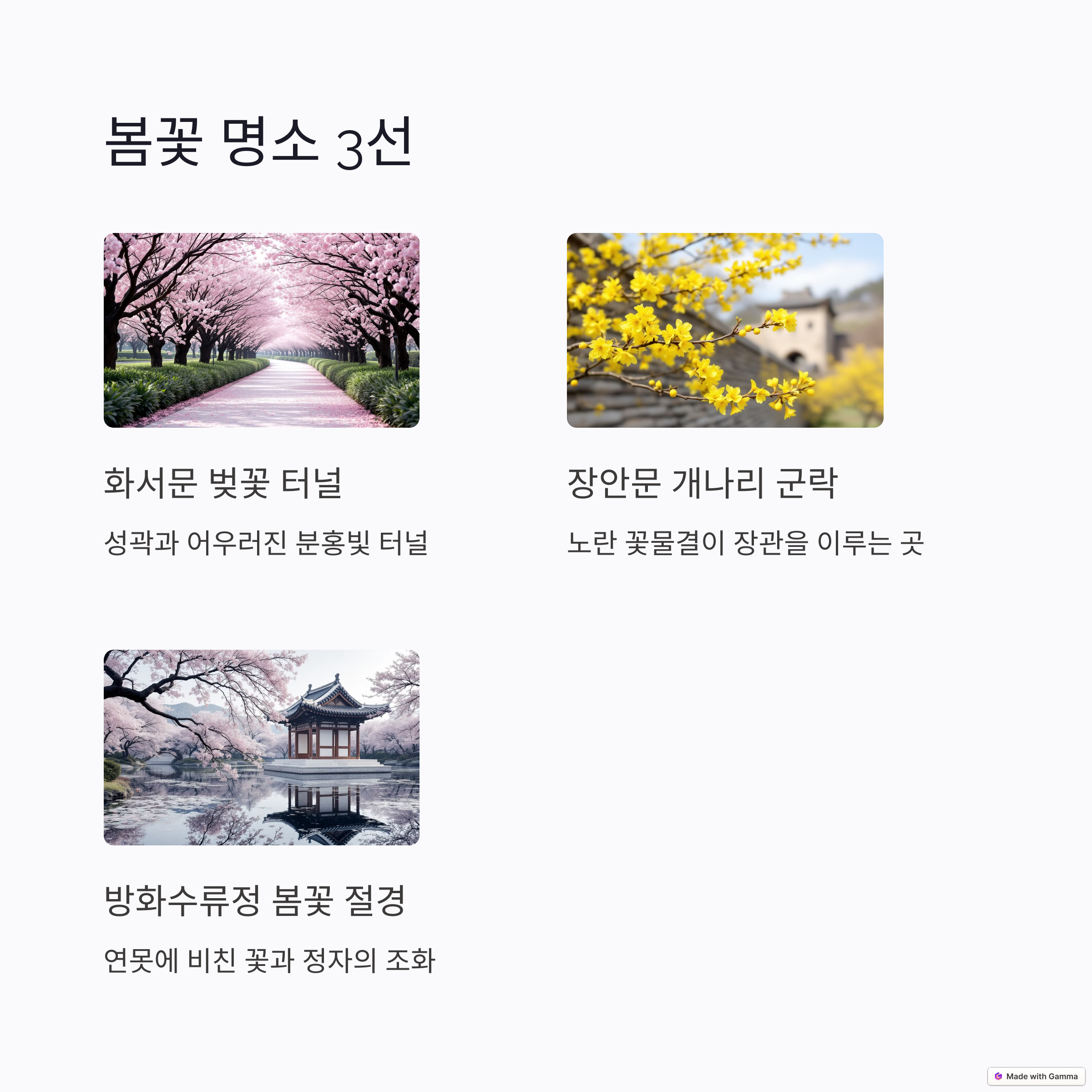 봄철 나들이 명소 | 벚꽃과 개나리 어우러진 풍경, 피크닉 및 산책 추천 |